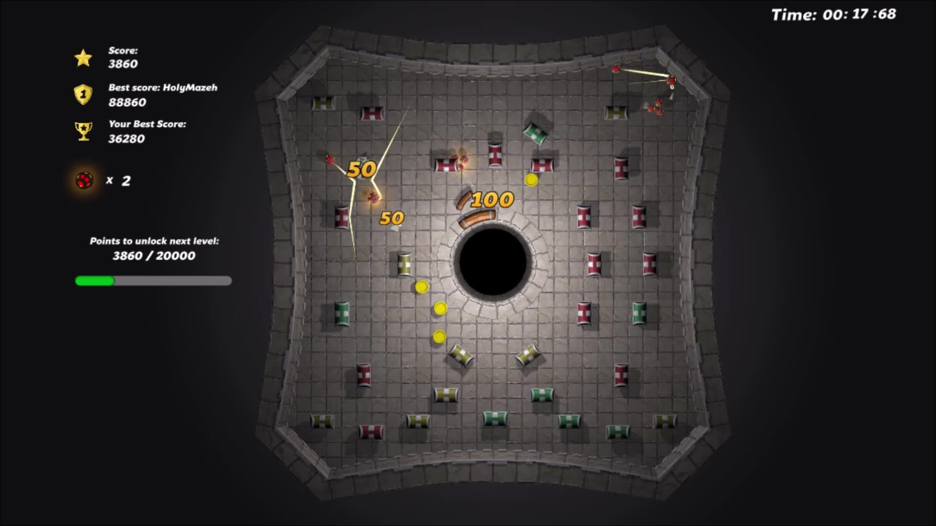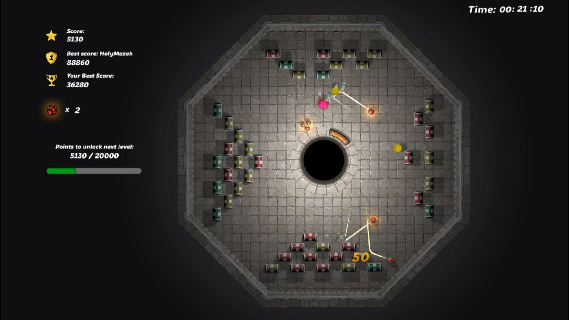 Bricks In The Box is an arcade game inspired by the breakout title, in contrast to the classic version, the game takes place on boards of various shapes - hexagon, triangle, pentagon - the slat and hole is in the middle of the level. The player's task is to break down as many boxes as possible and to beat his own and global records.