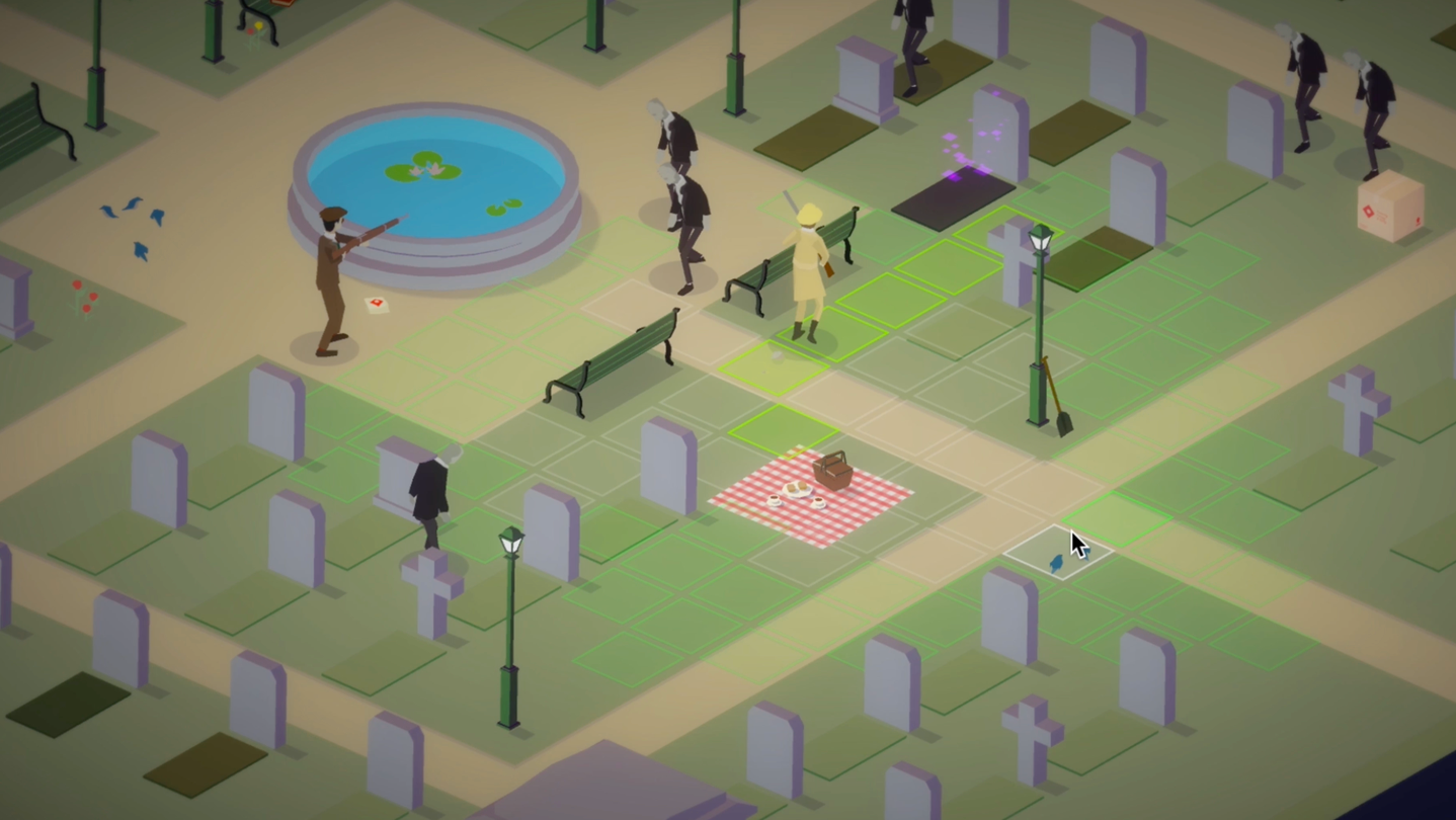 Royal Agents: Sweet Zombie is a turn-based squad game with unlikely agents trying to stop evil in time for tea. You control a team of three agents of the crown with different skills and backgrounds, tasked with the assignment to investigate and stop any evil-doings in a graveyard.