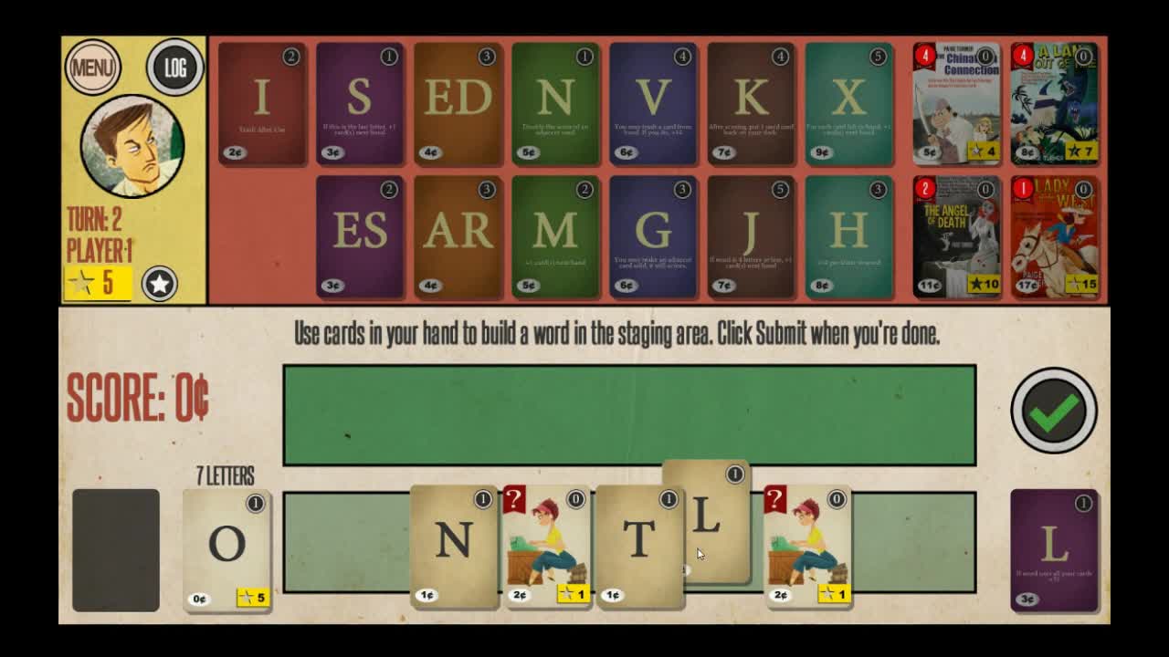 You are an author trying to finish kitschy paperback novels in this deckbuilding word game. Play against opponents offline or AI.