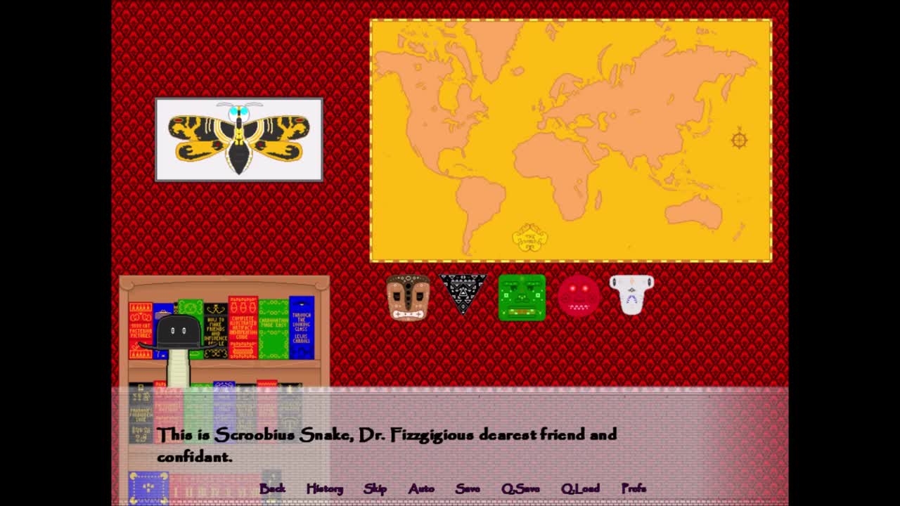 Dr. Fizzgigious is a scholar fascinated by carbonated drinks and historical artifacts. His passions merged when his latest carbonated concoction brings artifacts to life! Dr. Fizzgigious' Fantabulous Carbon Dating Simulacrum is quasi-educational! Potentially Romantic! Incredibly Cute! Dr.