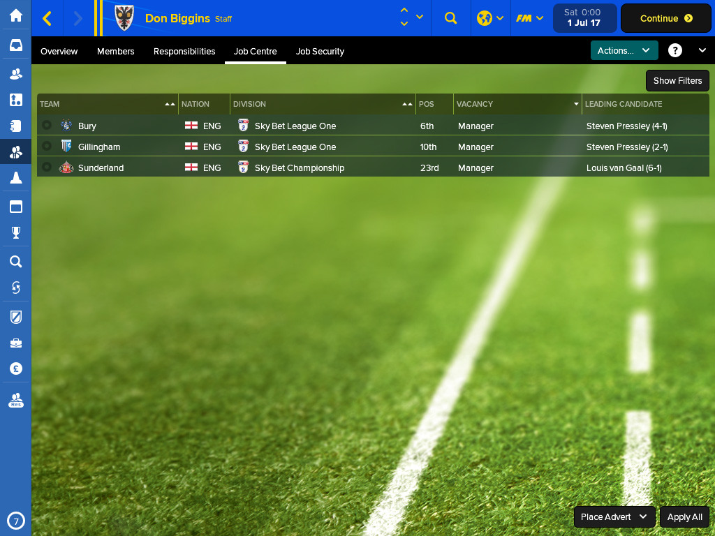 Football Manager Touch 2018 - All Job Applications