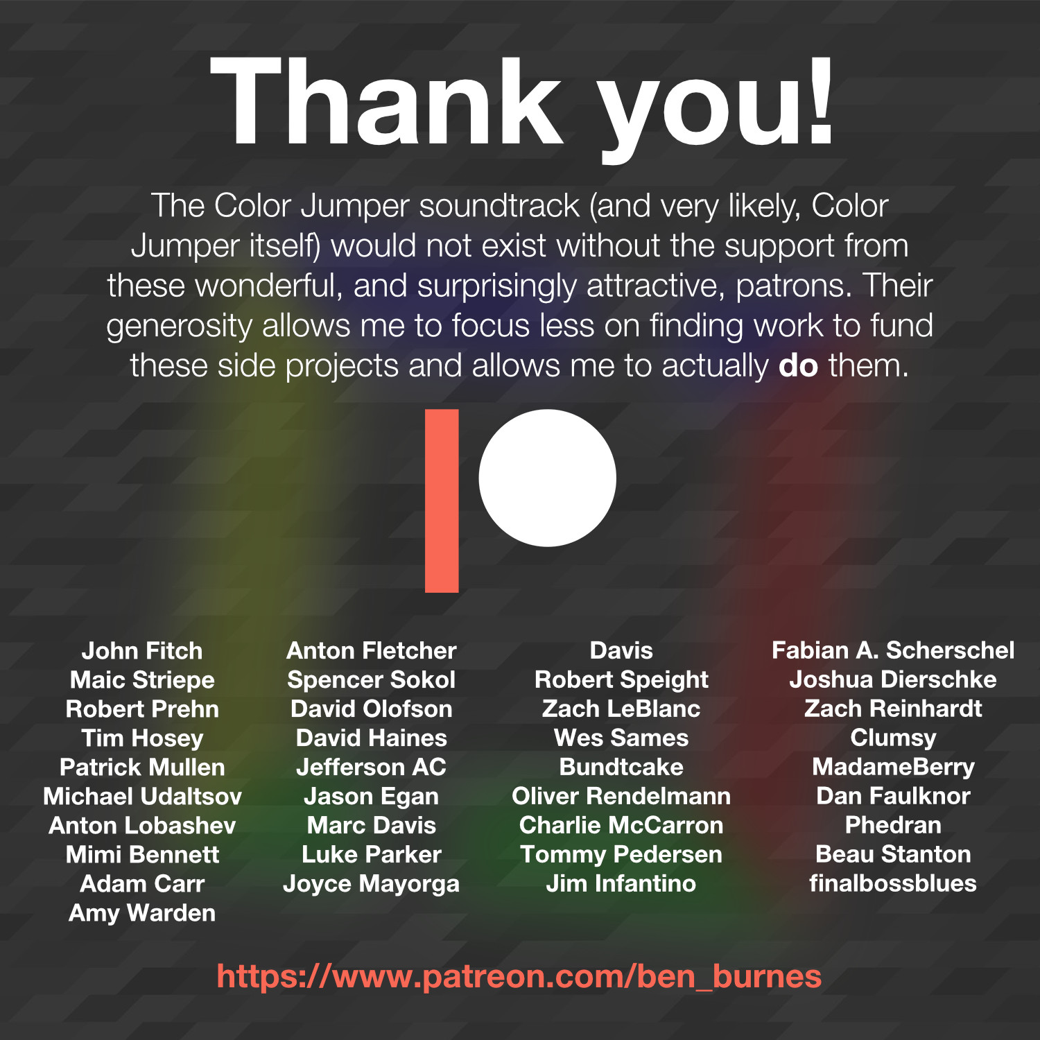 This DLC contains the Color Jumper soundtrack and is provided in high resolution MP3 format. The soundtrack is 29 tracks long, containing mixed and unmixed versions of all the section layers.