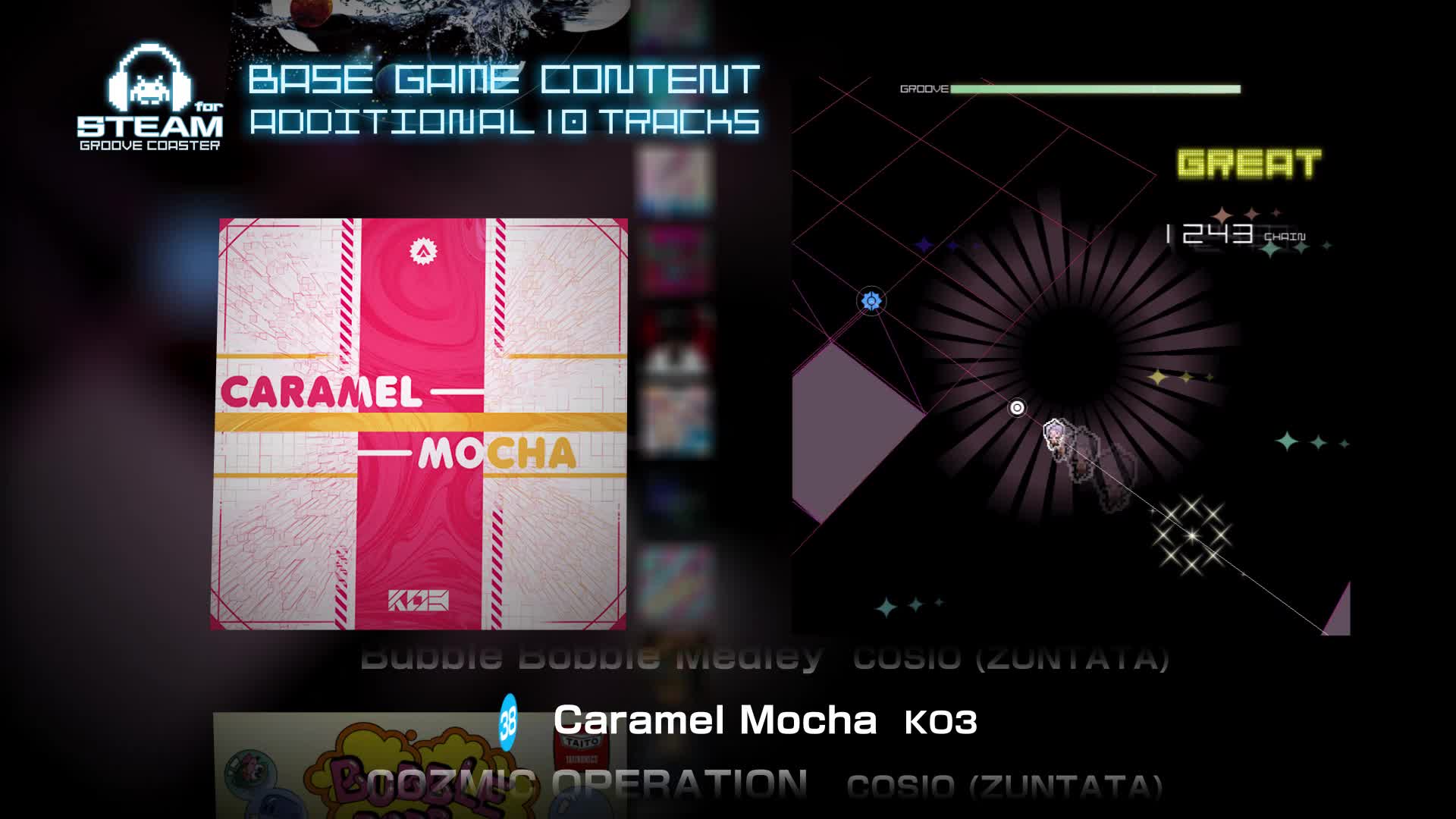 Riding the rhythmic rails of success from smart phone, into the arcades, now GROOVE COASTER arrives on Steam! Are you ready to ride a roller coaster of sound and light through a universe of music?
