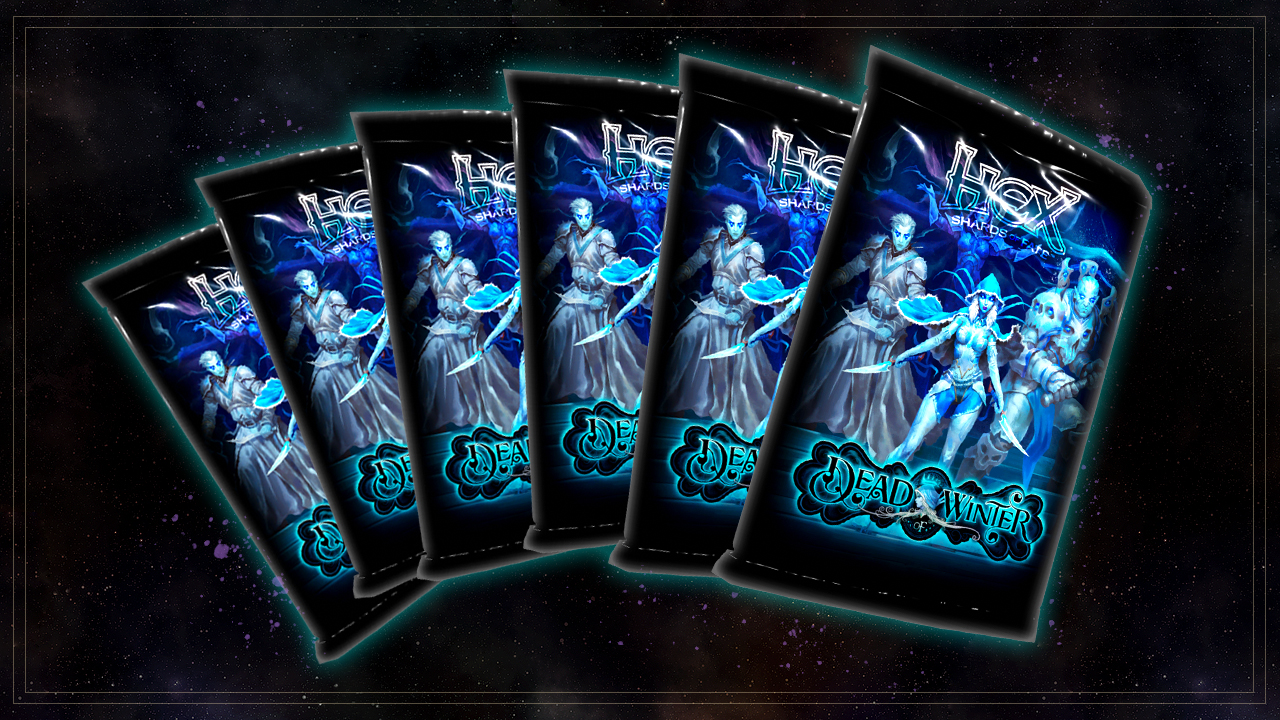 HEX: Dead of Winter BundleBUNDLE CONTENTS6x “Dead of Winter” Booster Packs 1x Shield of Illumination 1x Decayed Robes 1x Eventide Boots 1x Twilight Scout Gloves 1x Grimplekin Goggles 1x Bear Gloves 1x Brutal Boots 1x Luminous Raiment 1x Metal, Mind Case 1x Greatblade of Judgment4x Common Stardust1x “Dead of Winter” Deck Sleeve2,500 Gold