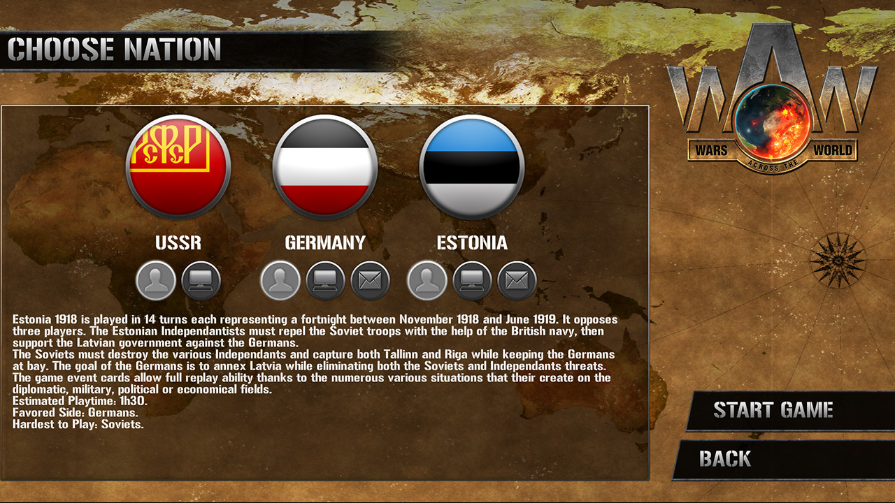 Estonia 1918 covers the Estonian war of independence after the fall of Czarist Russia in 1918. The Estonian government must hold against the Soviet menace trying to recapture former Russian imperial provinces, but also against German troops trying to annex Latvia and its neighbour with the aim to settle for long in the Baltic states...