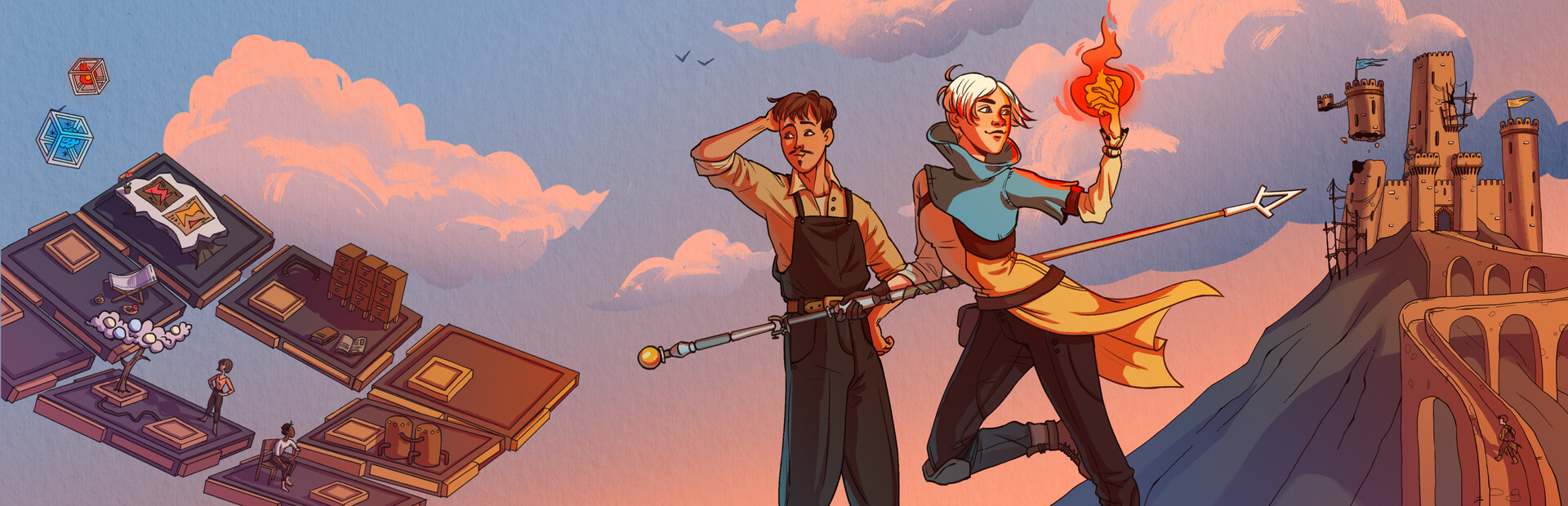 Fay’s Factory is a story-based RPG at heart, with deckbuilding elements on top. Manufacture magic and fight duels. Go on hand-crafted adventures. Investigate, argue and lie. Become a great middle manager or a decent human being.