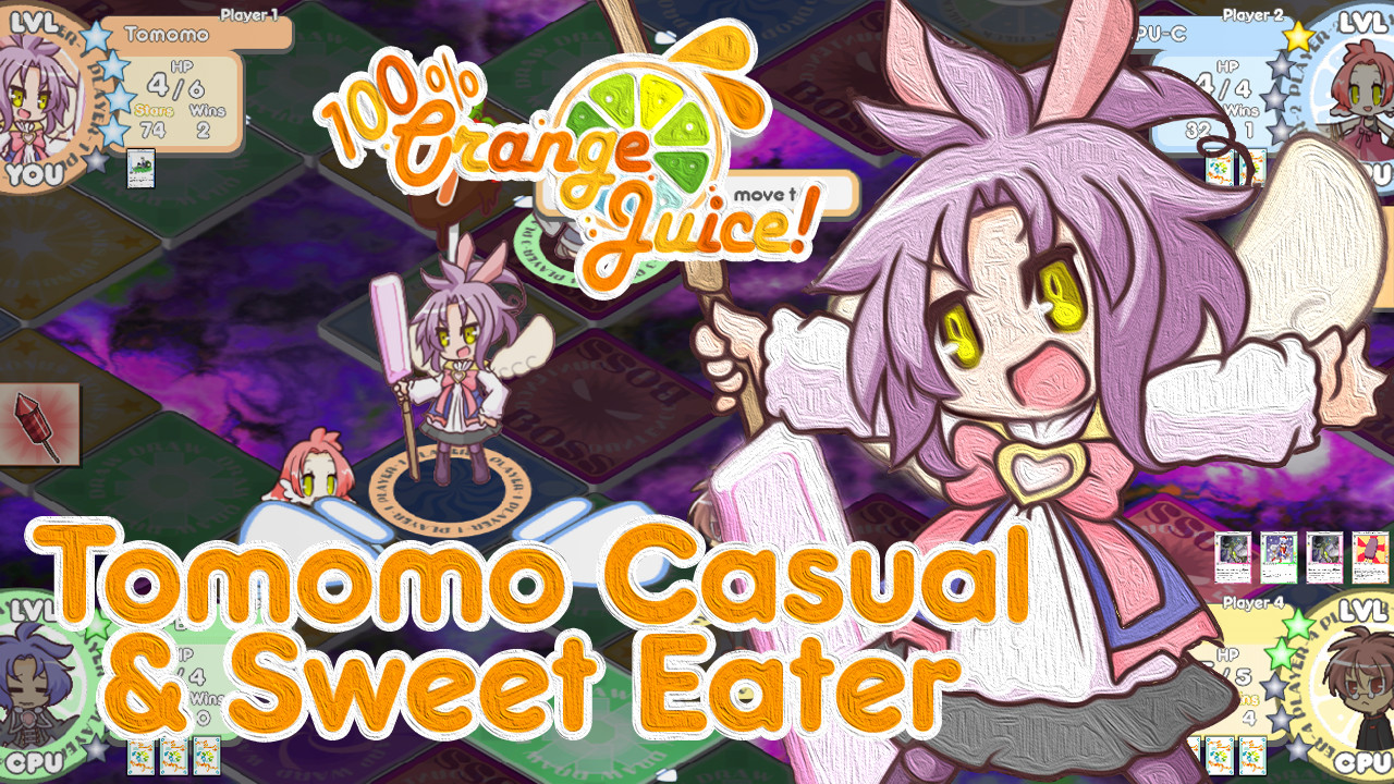 100% Orange Juice - Yuki & Tomomo Renewal Pack adds Yuki (Dangerous), who disrupts the play by seeking wins through trap use, and a brand new version of the game's end boss: Tomomo (Casual) who can upgrade to Tomomo (Sweet Eater) if she can just bother to get out of her futon.