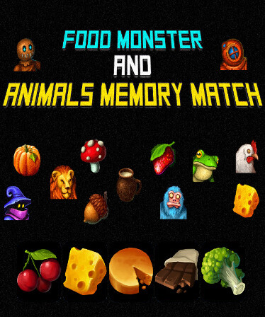 Food Monster and Animals Memory Match game is a classic board game, which help you develop yout memory skills. Playing this matching game will help you improve your recognition while having fun.