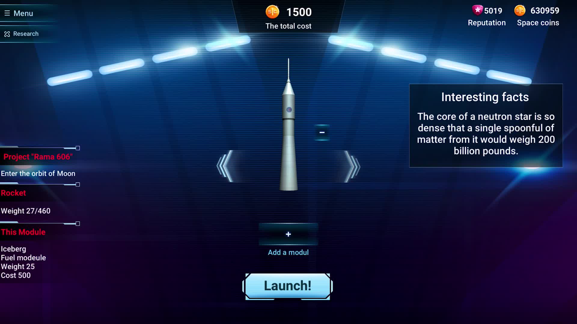 The year is 2023, and you are a head of private space launch company. You are driven by the only ambition: to reach the stars. Build rockets from wide variety of components, improve them, study new technologies to forge more and more powerful spacecraft.