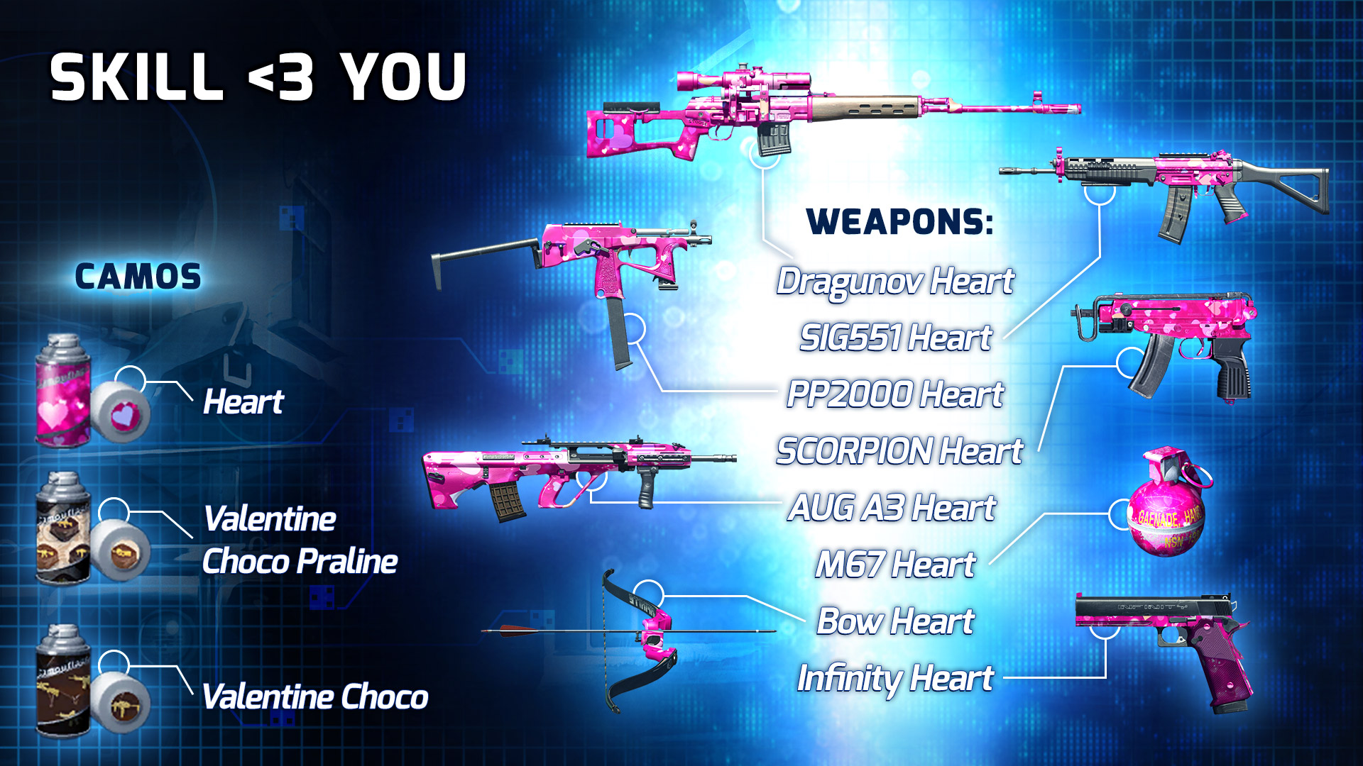 Get your free SKILL <3 YOU DLC, packed full with rosy-cheeked love and deadly firepower!