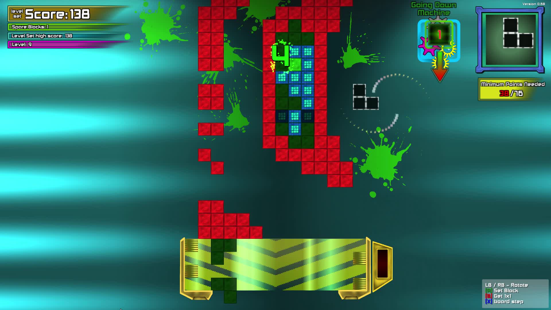 A casual puzzle game with classical block rotating angle. On the single player game, your goal is to place blocks on the board while time and speed is of an essence. Compete against your cousin / sister / mortal enemy in a hectic run to be the first one to cover all the greens on the board.