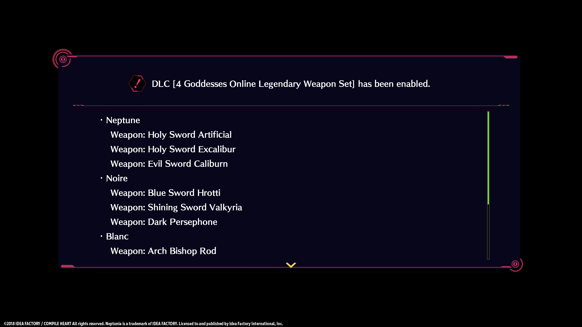 Megadimension Neptunia VIIR - 4 Goddesses Online Legendary Weapon Set