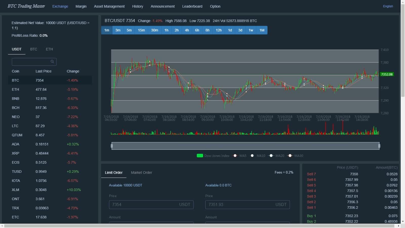 This is a simulation of the digital currency trading game,the data is synchronized in real-time from online exchanges (such as: GDAX, BINANCE). You can learn how to trade digital currency in this game. The game currently supports more than 100 kinds of digital currency exchanges.