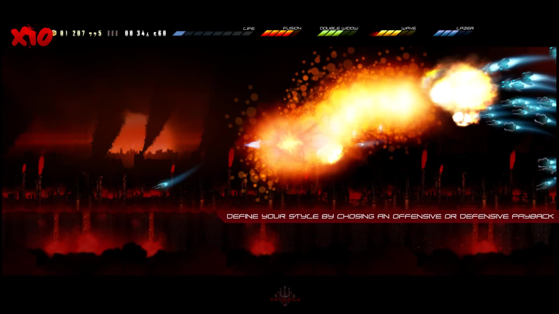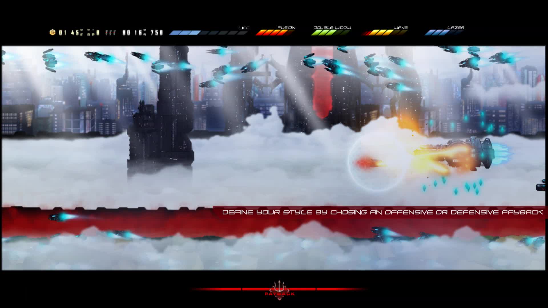 Huge Enemy is a horizontal Shoot ‘em up that takes place in a dark sci-fi universe with Japanese influences.