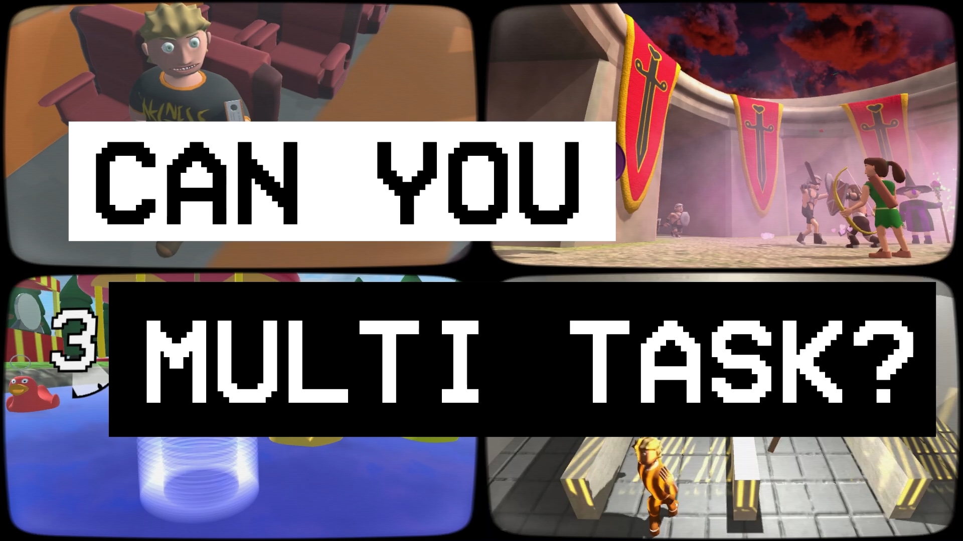 MultiTaskMaster is a brain melting arcade game in which you juggle four games at once. Become the MultiTaskMaster by completing 48 different games in 12 different locations.