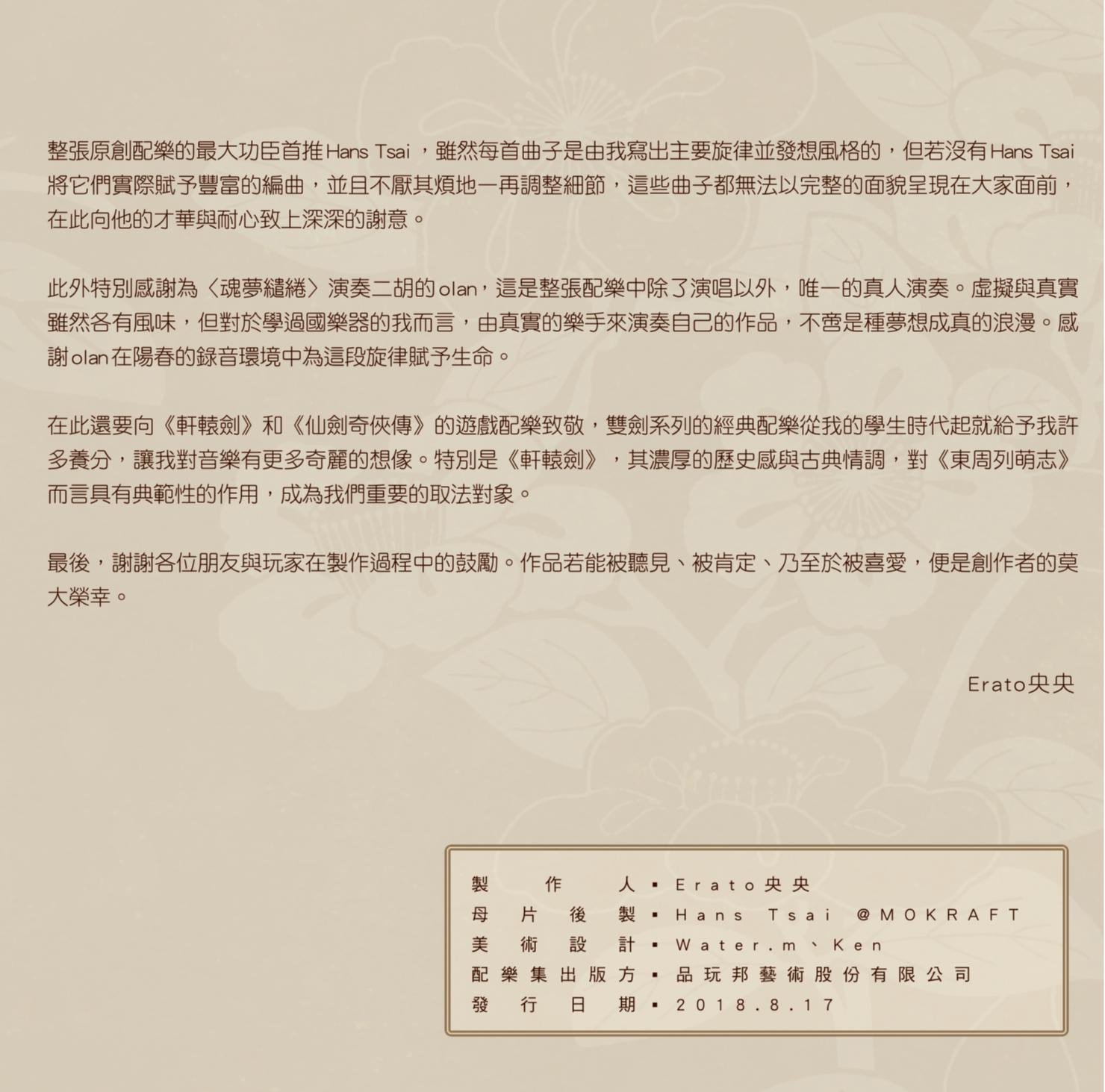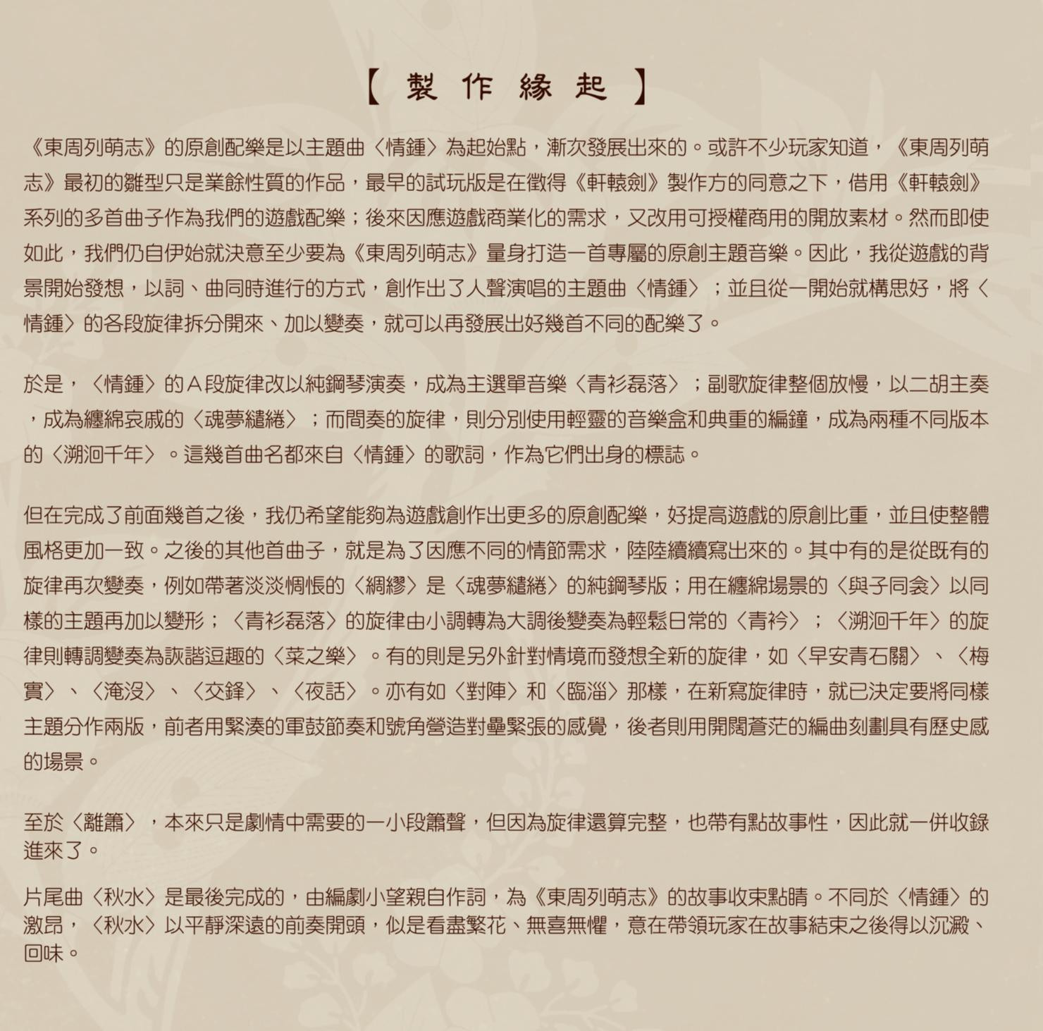 東周列萌志Philosophic Love-原創配樂集Original Soundtrack Content