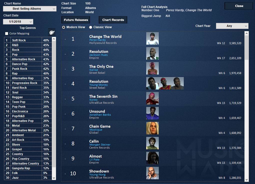 Dominate the airwaves: Watch as your artists try to climb the charts in a new radio station media system. Rich List: Watch as your artists get richer and richer, climbing to the top of a new chart type! Customizable album art: Create and import your own album art to add the next layer of realism for your artists.