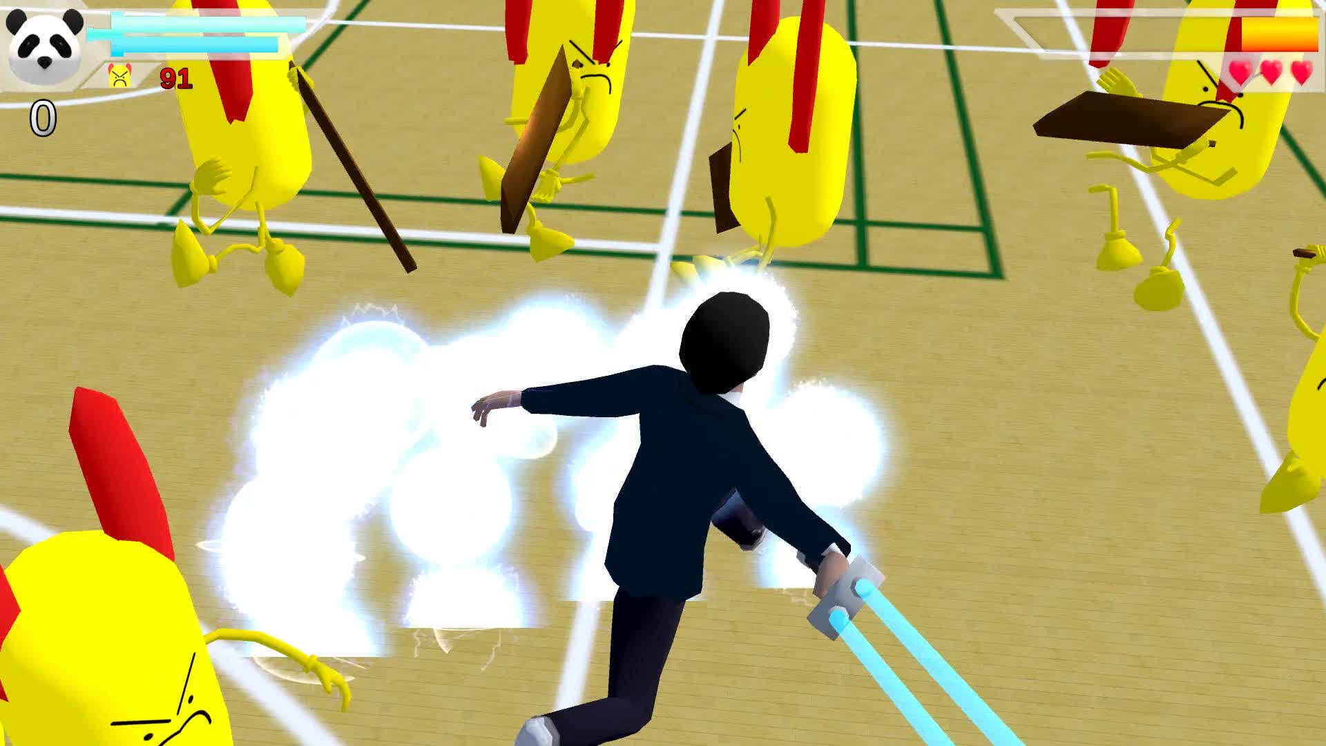 There are pandas. You rescue them and it's kinda like capture the flag I guess.