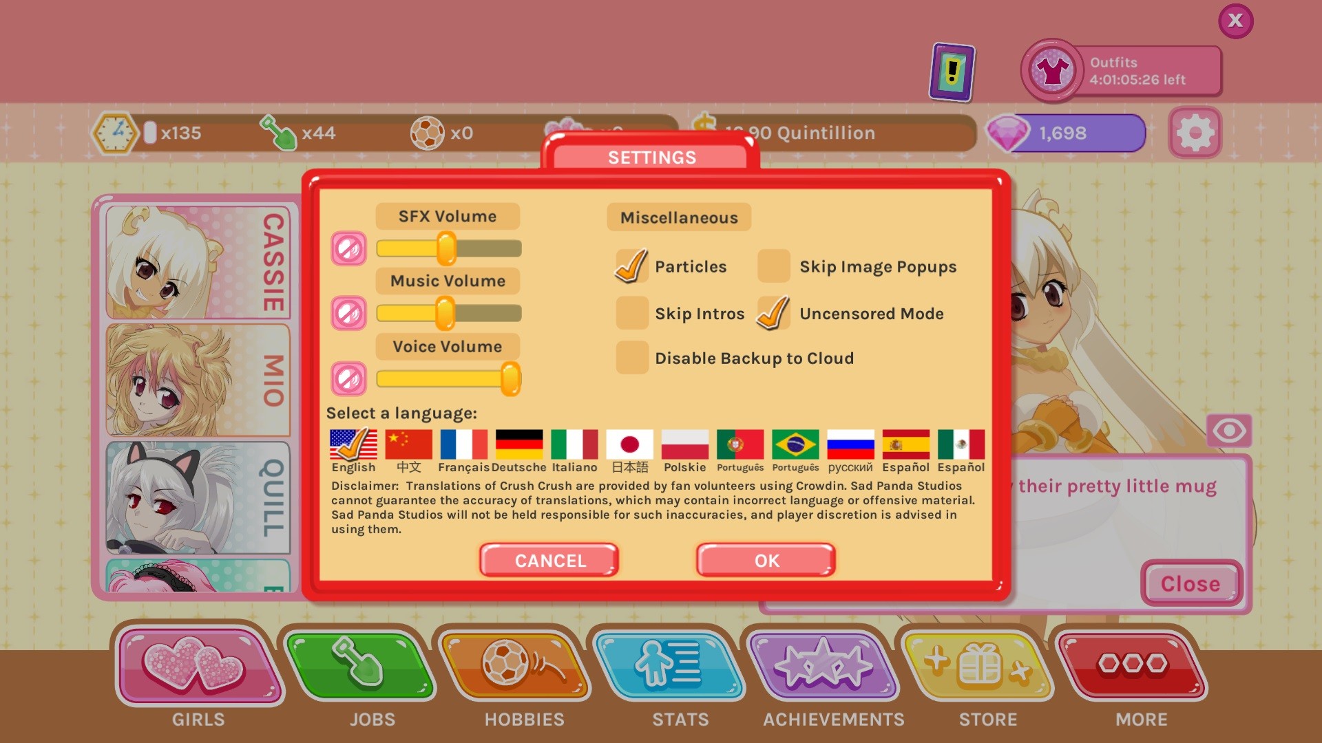 This DLC installs a new mode in your Crush Crush game that allows you to play an uncensored hentai (adult) version of the game. New artwork is included, with beautiful high-resolution illustrations and sexy scenes. The DLC also includes the “lingerie” and “birthday suit” outfits.