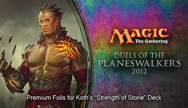 Convert all uncommon, rare, and mythic rare cards in Koth’s “Strength of Stone” red deck to premium foil cards. Additional content for Magic: The Gathering — Duels of the Planeswalkers 2012.