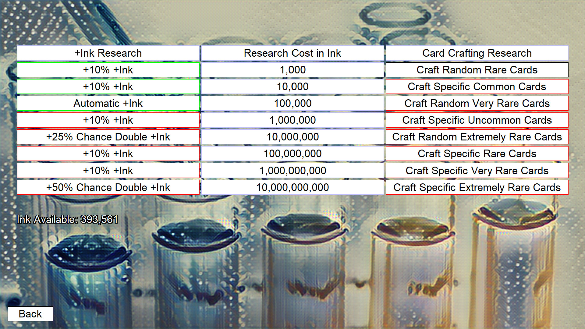 Overcraft is a collectible card game. Earn Ink to craft cards and unlock Research. Collect all 150 cards.