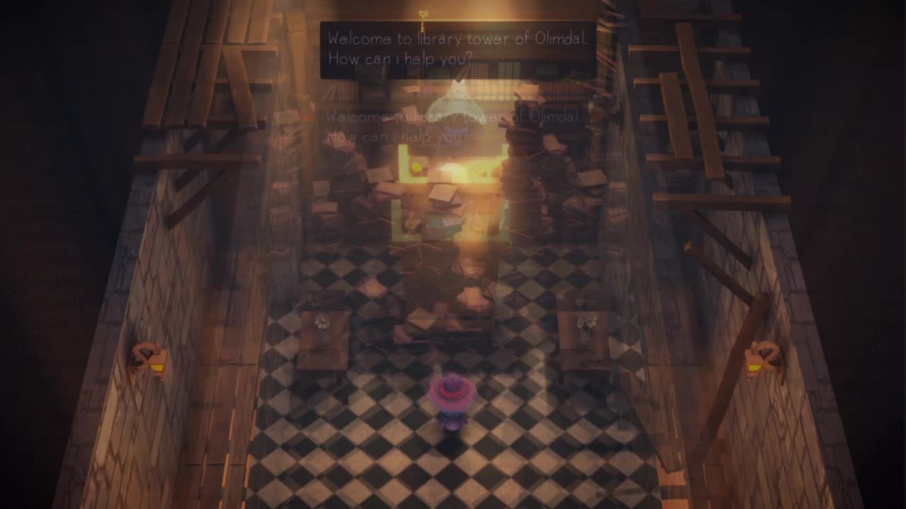 Welcome to library tower of Olimdal, where any wizards dream to get knowledge from. Due to general renovation of the tower, sometimes it can be hard to find your way around the rooms, especially in your condition!