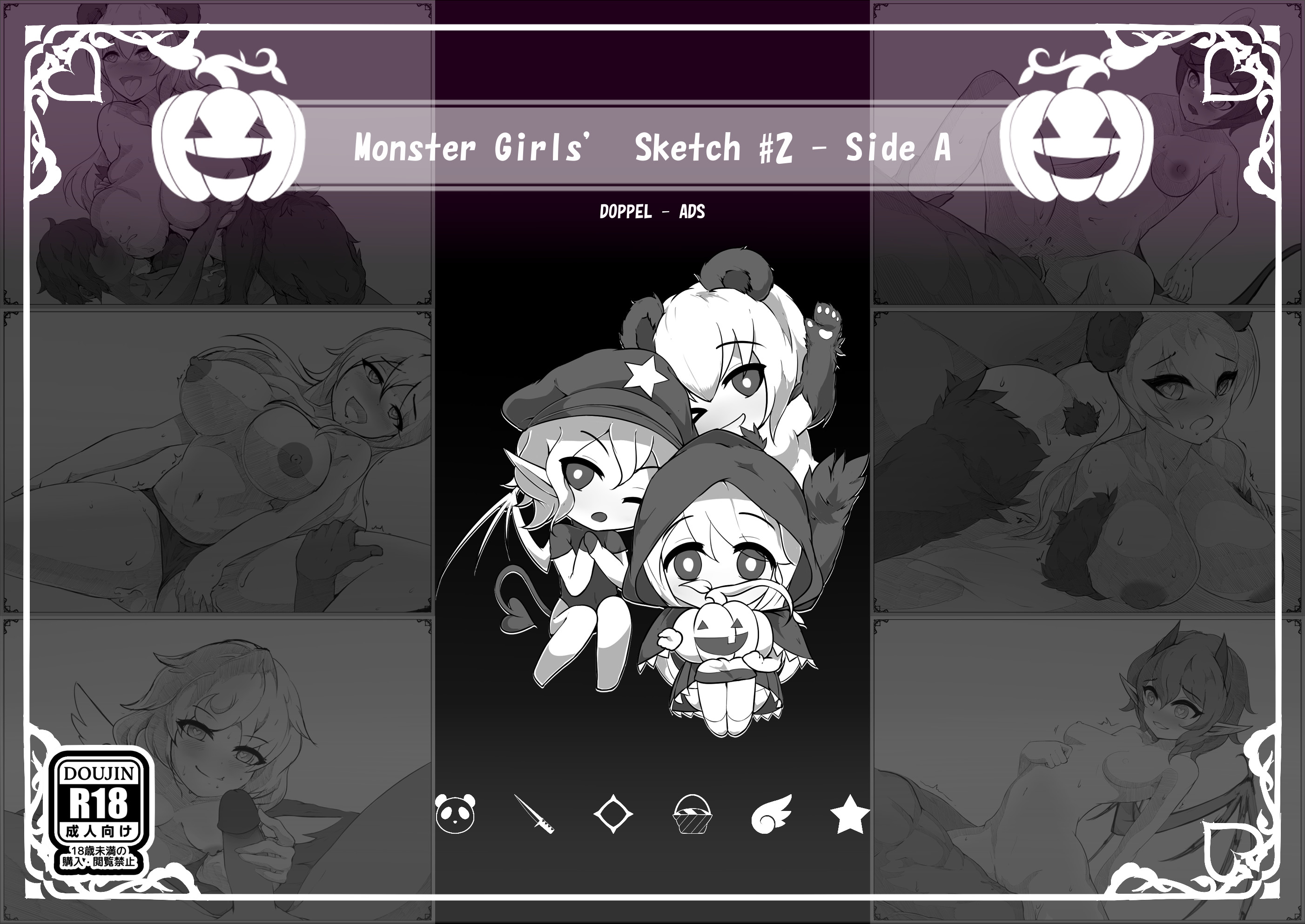 This book is part A of Halloween Sketchbook, a total of 18 pages of artbook, with a total of 6 monster girls with their own H-Scene. Please take a look. B/W
