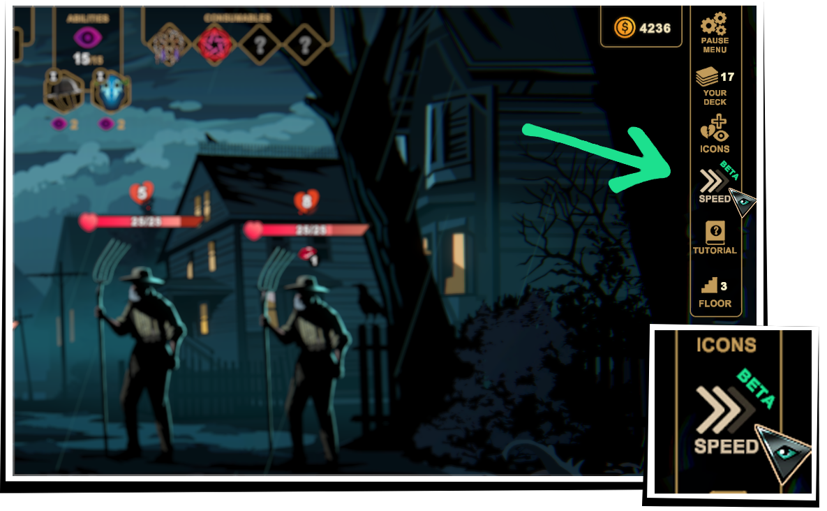 - Fixed the combination of the collectible relic "Card Shark Deck" and cursed cards. Cursed cards are now played at the end of the turn as intended and disappear from the hand, preventing clutter.