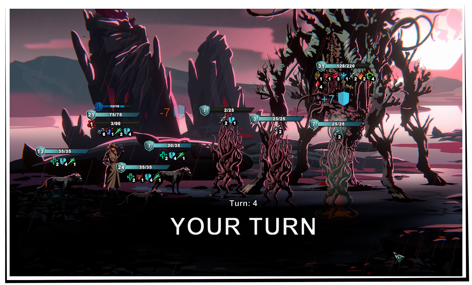 - I moved the widget for new turn announcements and queue transitions lower and removed the tentacle animation, as it was unnecessary flickering in front of the player’s eyes.