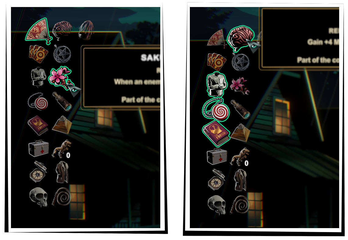 - When hovering over relics in your inventory, selecting a new relic, or viewing relics at the vendor, your relics from the same collection will now be highlighted. This makes it easier to navigate collections.