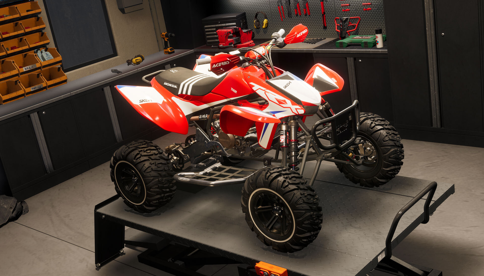 Our first big addition to ATV customization is finally here! New graphics kits from SKDA and SSI Decals. New parts and parts categories, from new bumpers and suspension, all the way to nerf bars! We already have a lot more parts planned for the next few patches, so make sure to join us on our official Discord server, to let us know what ATV customization you still want to see added!
