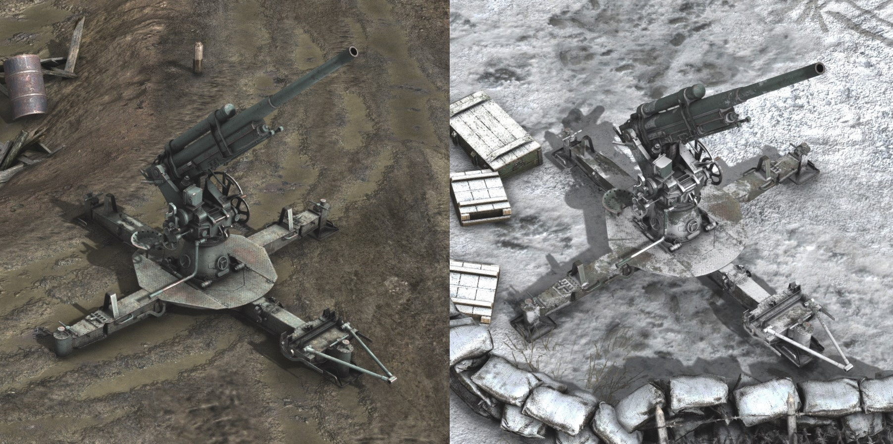 Throughout Content Update 6 and beyond, we will be releasing a partial rework of the “Ostfront” environment assets. Over the last 10 years that we’ve been working on the game, the level of detail and technical complexity of our models has advanced dramatically. The time has come to update Ostfront to the standards of our Western Front assets. We will be doing so gradually, as our small team is spread thin among multiple fronts. In this update, you will get a select few higher-quality models and textures for some important assets.Anti-Aircraft weapons