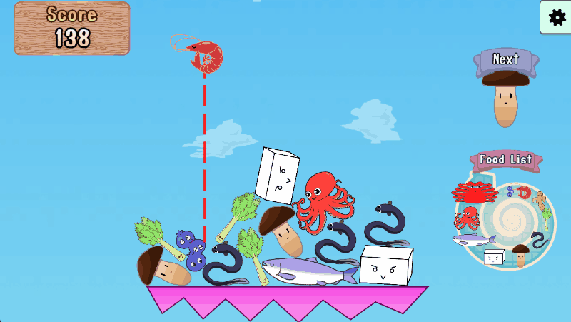 Pile up mode has simple rule. Player drop foods onto the foundation instead of pot.