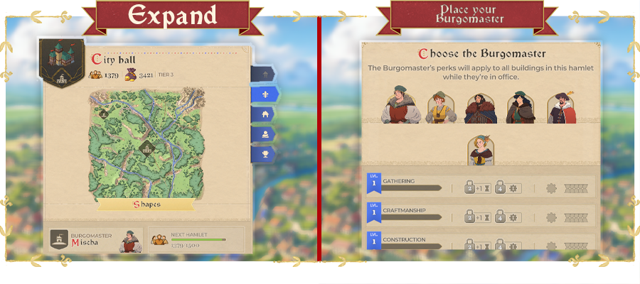 You can expand your city by creating hamlets and naming one of your trusted companion as burgomaster