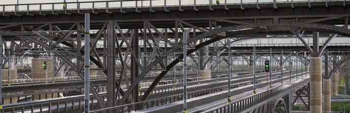 Probably the biggest performance boost comes from the switch from the old "agents search by track tiles" to graph-based search. Now the entire track system is divided into graph edges between any crossings, intersections, or track type changes. Any vehicle can very quickly check which path is best at each intersection, so it responds to signal states as it always does, but with less performance impact and without stuttering.
