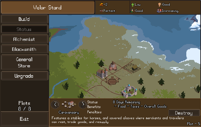 A new update with several enhancements to the Fort management system has been added to the beta branch. You can now view the current statuses of the buildings that exist seeing how much time is remaining during their build process, along with their current states and bonuses. You will also now finally be able to destroy buildings that you find no longer relevant so keep in mind this can impact the current available stores.