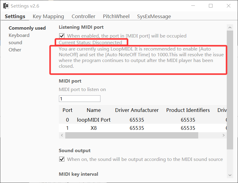 Optimization: Added special notification when using LoopMIDI