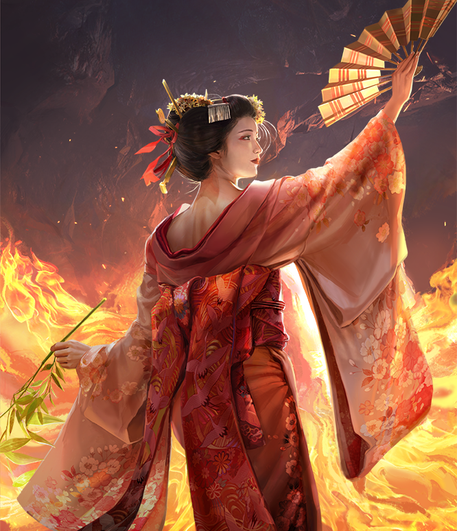 We are also pleased to announce that an alternate ‘Shrine Maiden’ version of the Ame-no-Uzume Minor God Portrait is available to all players who own the Heavenly Spear DLC! The version that was present for launch remains the default appearance.