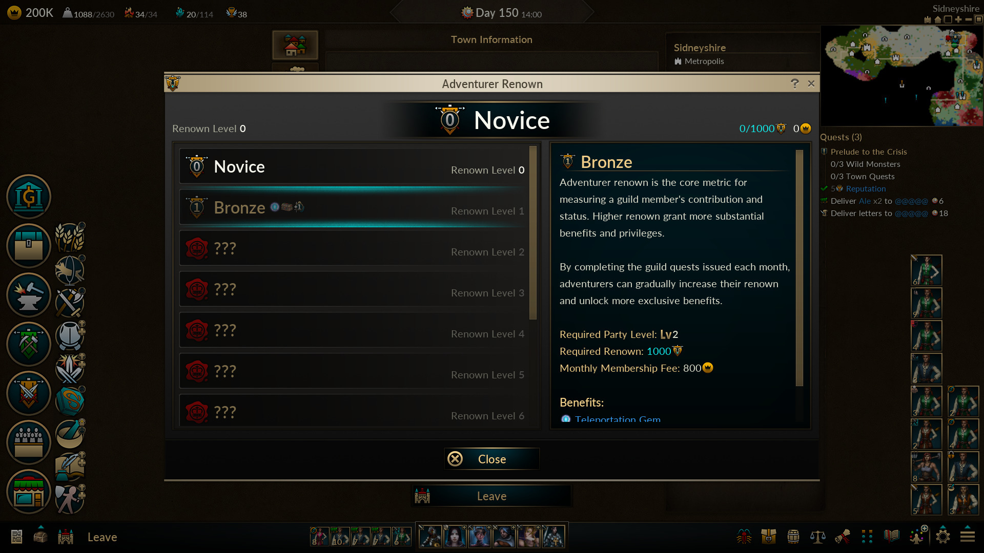 Adventurer renown begins at level 0 (Novice) and can be promoted to a maximum of level 10. Each level grants 3 to 6 exclusive benefits or enhances existing ones.