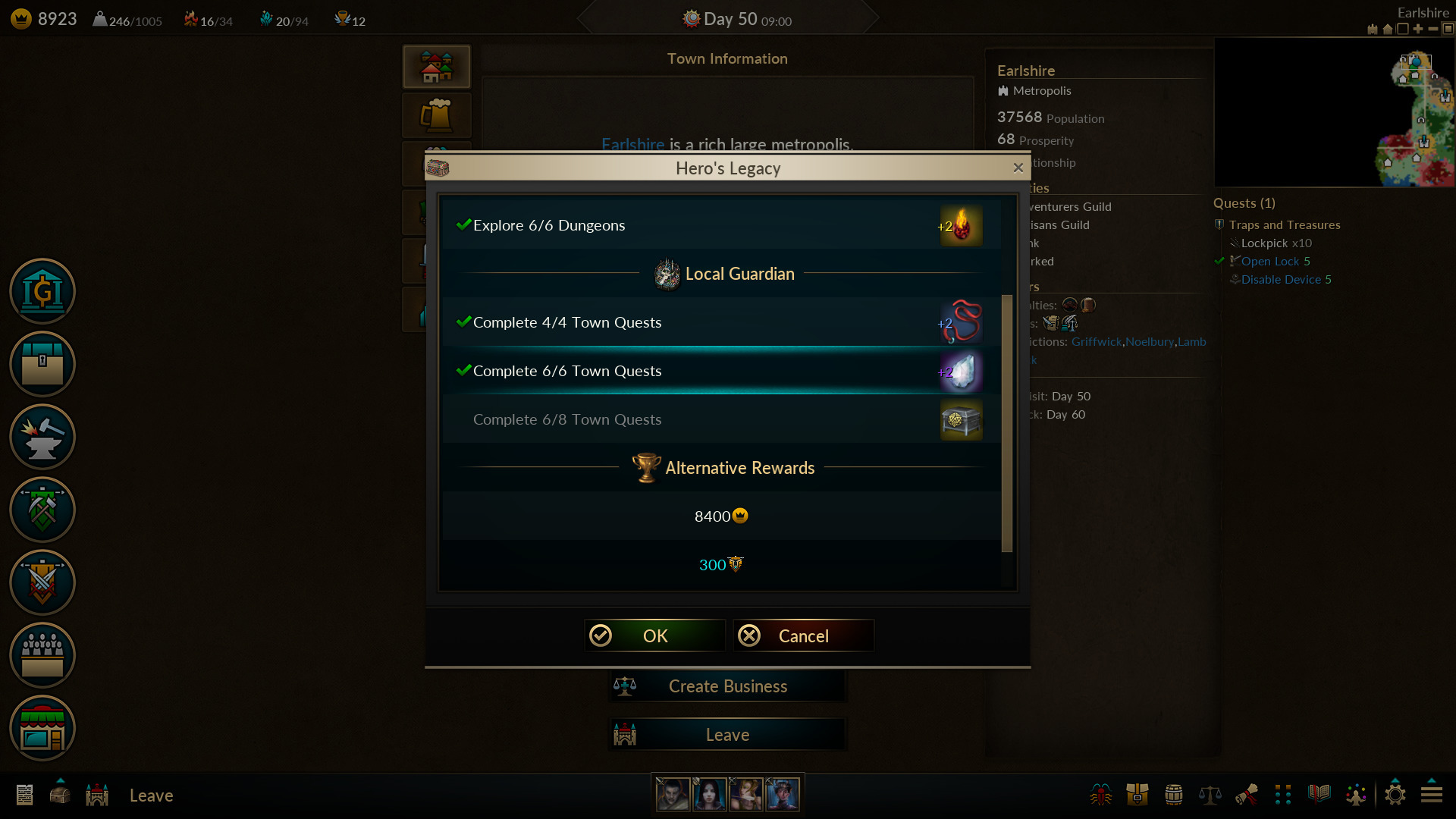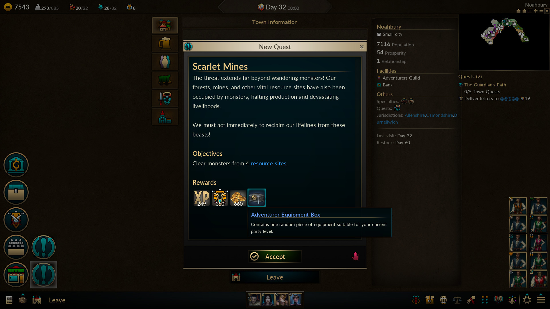 Increased XP rewards of town quests