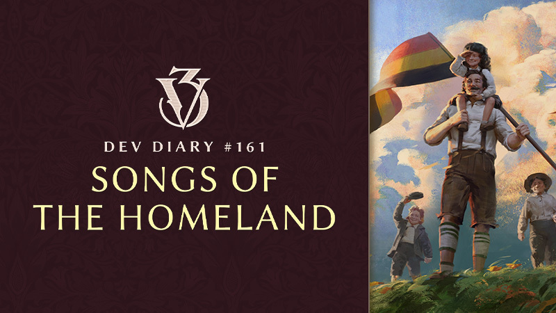 When we heard what this music pack was supposed to be about, we were really excited. Instead of writing music tied to specific gameplay content, we were able to write music much more freely alongside the overarching theme of „Songs of the Homeland“. So, first, we had to find answers to some pretty important questions: How can „Homeland“ sound, and what would be our approach for this theme? And how can we fit that into the existing soundtrack of Victoria 3?
