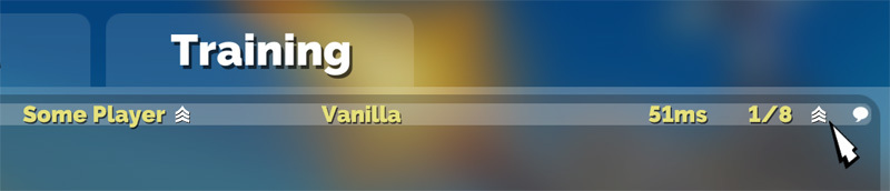 Next, we've added a simple form of match making. Players are divided into three experience levels using their total playtime: New Players (0-50 hours), Advanced Players (50-200 hours), and Expert Players (200+ hours). These levels are indicated by one, two and three stripes.