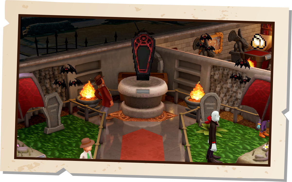 Collect 10 new exhibits across the three new POIs as you unlock digitised decor goodies alongside a new savoury Floor Chicken Casserole for your guests to enjoy in the Cafetaria (don’t worry about it, 20 seconds and 30 minutes are the same to Two Point County health inspectors, trust us). Just be careful your Vampire Guests don’t see garlic, and be nice to Poe when he visits, please.