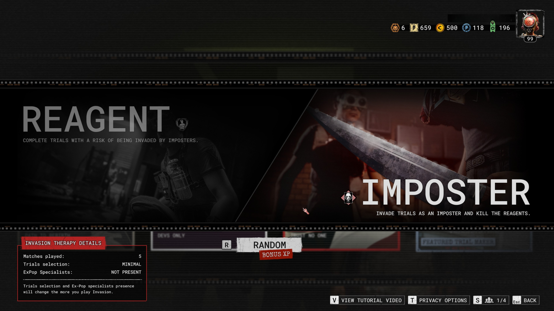 When playing as an Imposter, matchmaking prioritizes invading Reagents playing Trials from the Invasion program.
