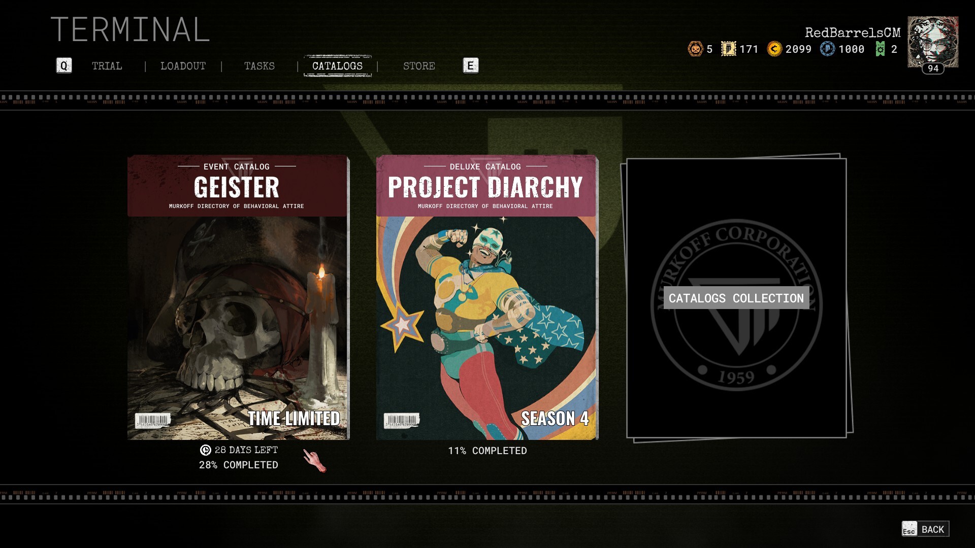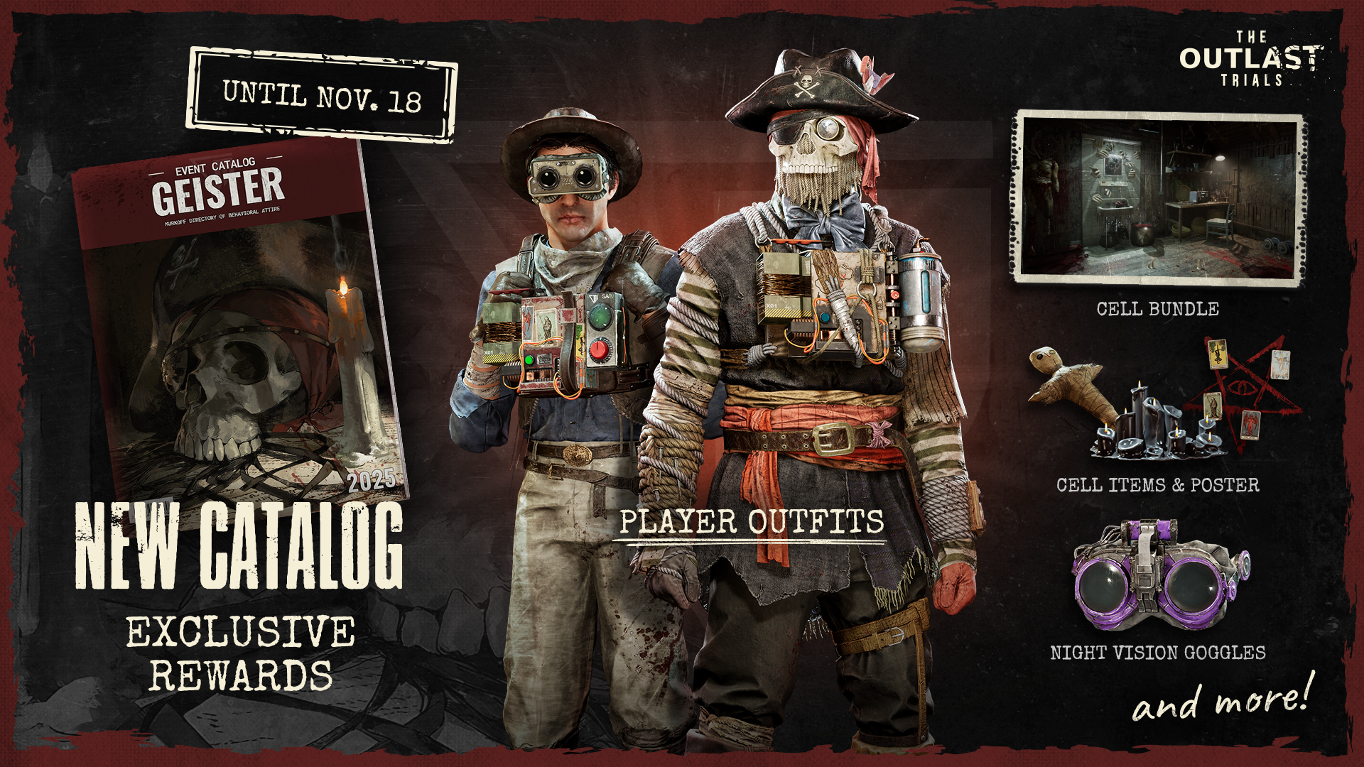 Once the 2025 Geister Event ends the Catalog will be vaulted. The 2025 Geister Catalog will be available in the Murkoff Store at a later date. You will be able to unlock the Catalog with Murkoff Coins, and its price will be balaced depending how far you progressed into it.