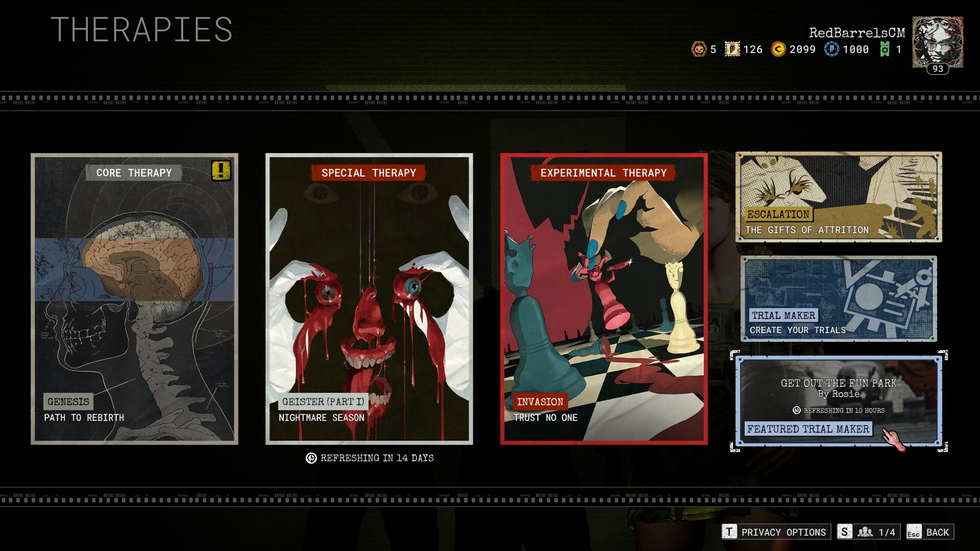 The Therapy Selection screen now showcases community-made Trials, crafted with the Trial Maker.