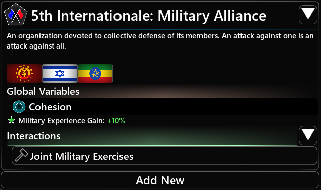 The military Alliance gives bonuses to the military of its member states. It is the most basic kind of organization, and most of the starting organizations are of this kind.