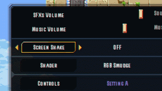 Toggle screen shake on/off: Also requested by Devonrv, this option can be found in the Settings menu of the Main Menu.