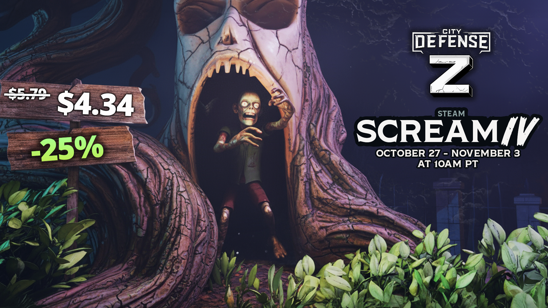 The bells of fear are ringing... Steam Scream Fest is underway and City Defense Z is bringing the roar of zombie hordes to your city!