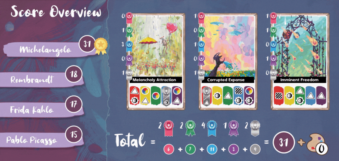 Painting Sandbox - experiment with all painting combinations in the Main Menu and see how they score. Create your favourite painting that will welcome you whenever you start the game.